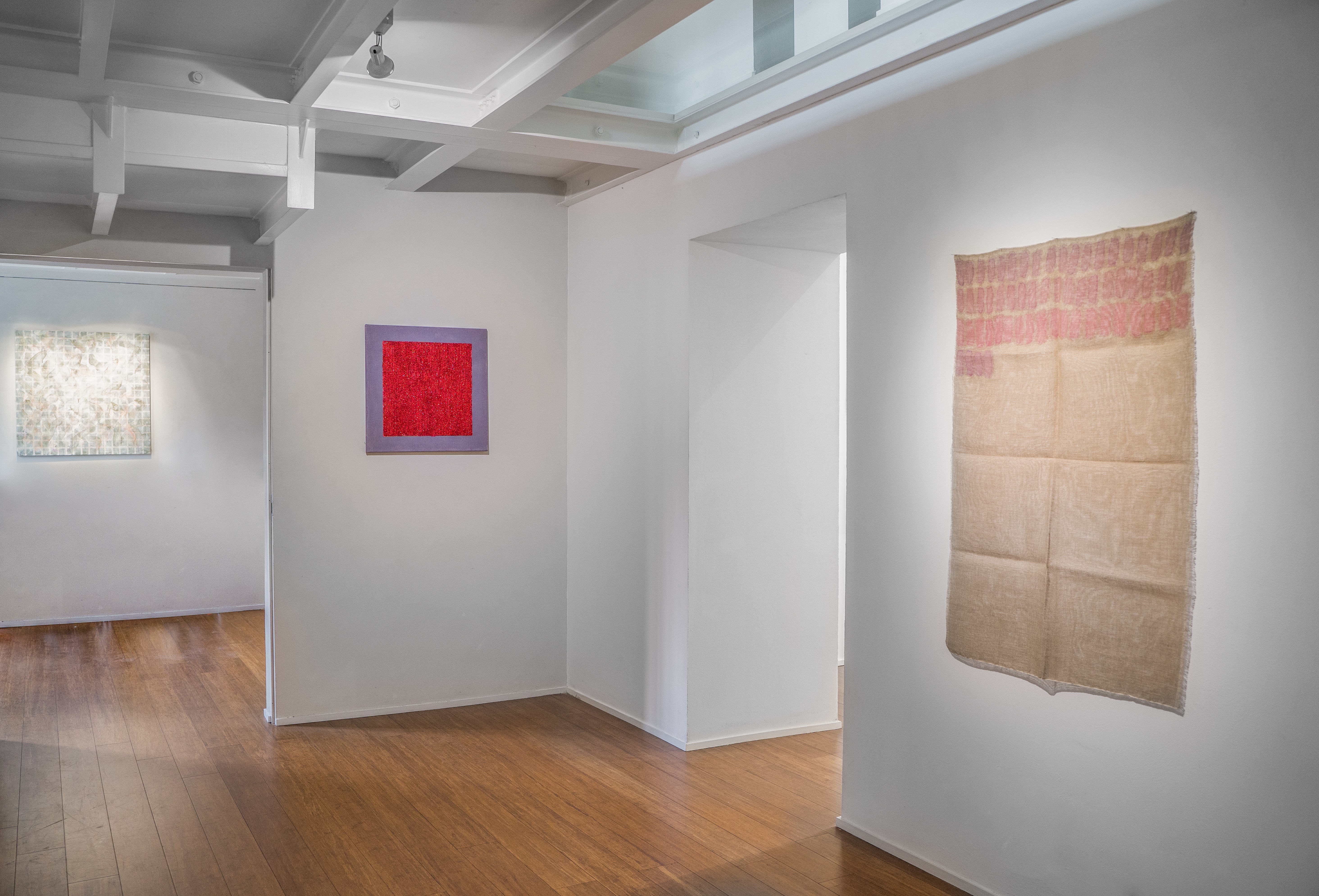 Pezzi scelti opportunamente e display filante nel produrre un confronto dialetticamente vivo per tre artisti in piena evoluzione espressiva. Tre “diversamente giovani” sulla cresta di un’onda che questa mostra cavalca stabilmente, riuscendo non solo a far valere capacità singole e singolari, ma ad ampliare anche il dibattito su un genere pittorico tra i meno definiti (la pittura analitica non essendo un movimento specifico è più assimilabile ad una macro area poli-comprensiva sul piano tecnico). E a furia di allargare alla fine salta fuori l’elemento fondamentale, quello che rende artisti provenienti da differenti fasce d’influenza geo-intellettuale una corazzata unita nell’analiticità delle proprie scelte. Tra loro si aggira un compagno fidato, si chiama “tempo pittorico”, per gli amici ritmo. Attore co-protagonista tra linee, tratteggi e quant’altro generato dalla mano libera di Griffa, azione in cui l’artista include interruzioni arbitrarie come pause, come un silenzio che non nega il suono e lanciato addosso al pubblico alla John Cage. Sulla pervicacia del pacchetto gestuale standard può intervenire poi il processo finale, la piegatura della tela, in una cadenzata sotto-struttura a griglia che incrociando la fondamentale percezione ritmica dell’artista torinese la completa.