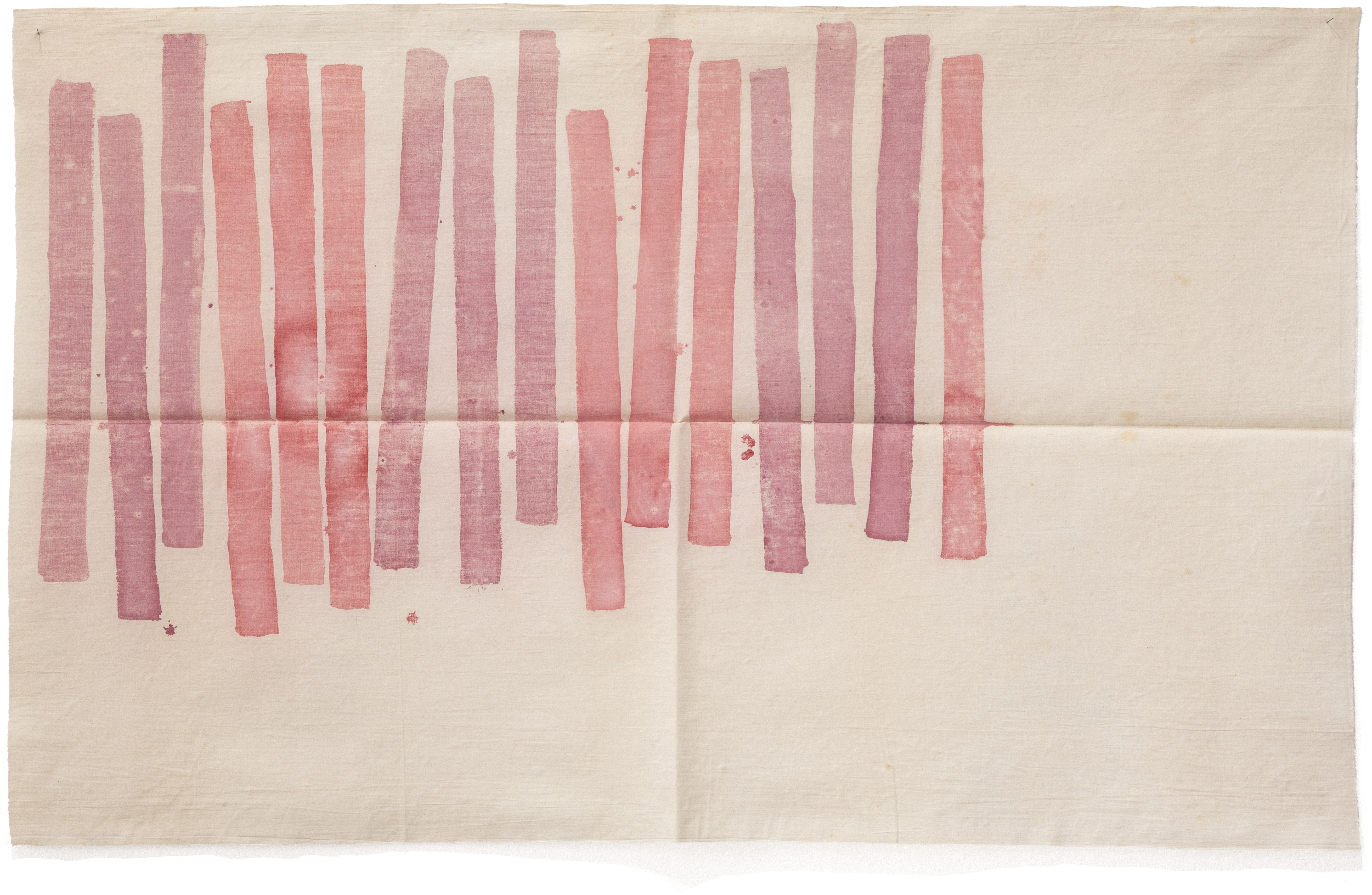 Giorgio Griffa, Linee orizzontali, 1973, 68x95cm, acrylic on jute