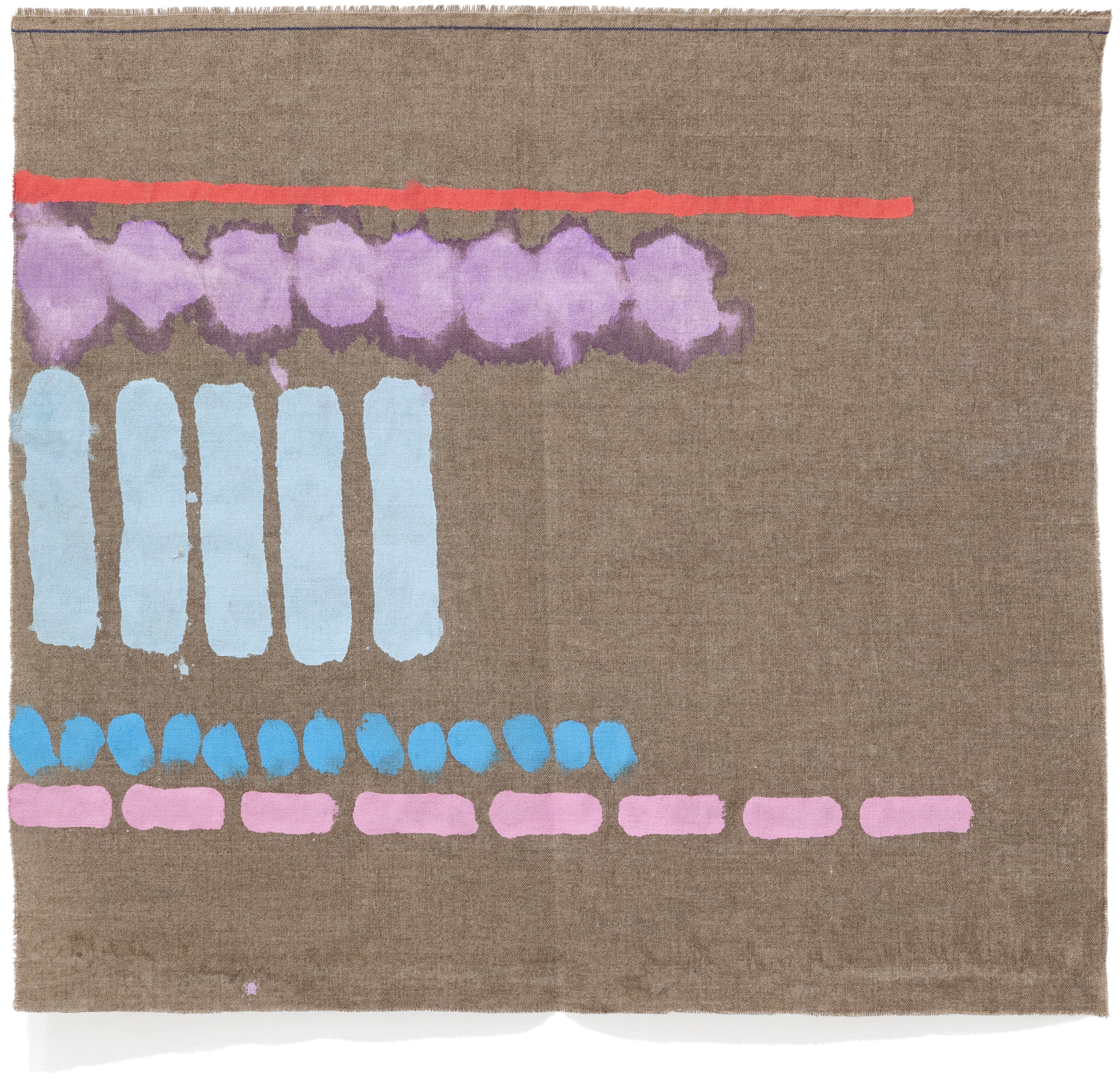 Giorgio Griffa, Cinque segni, 1979, 70x76 cm, acrylic on jute