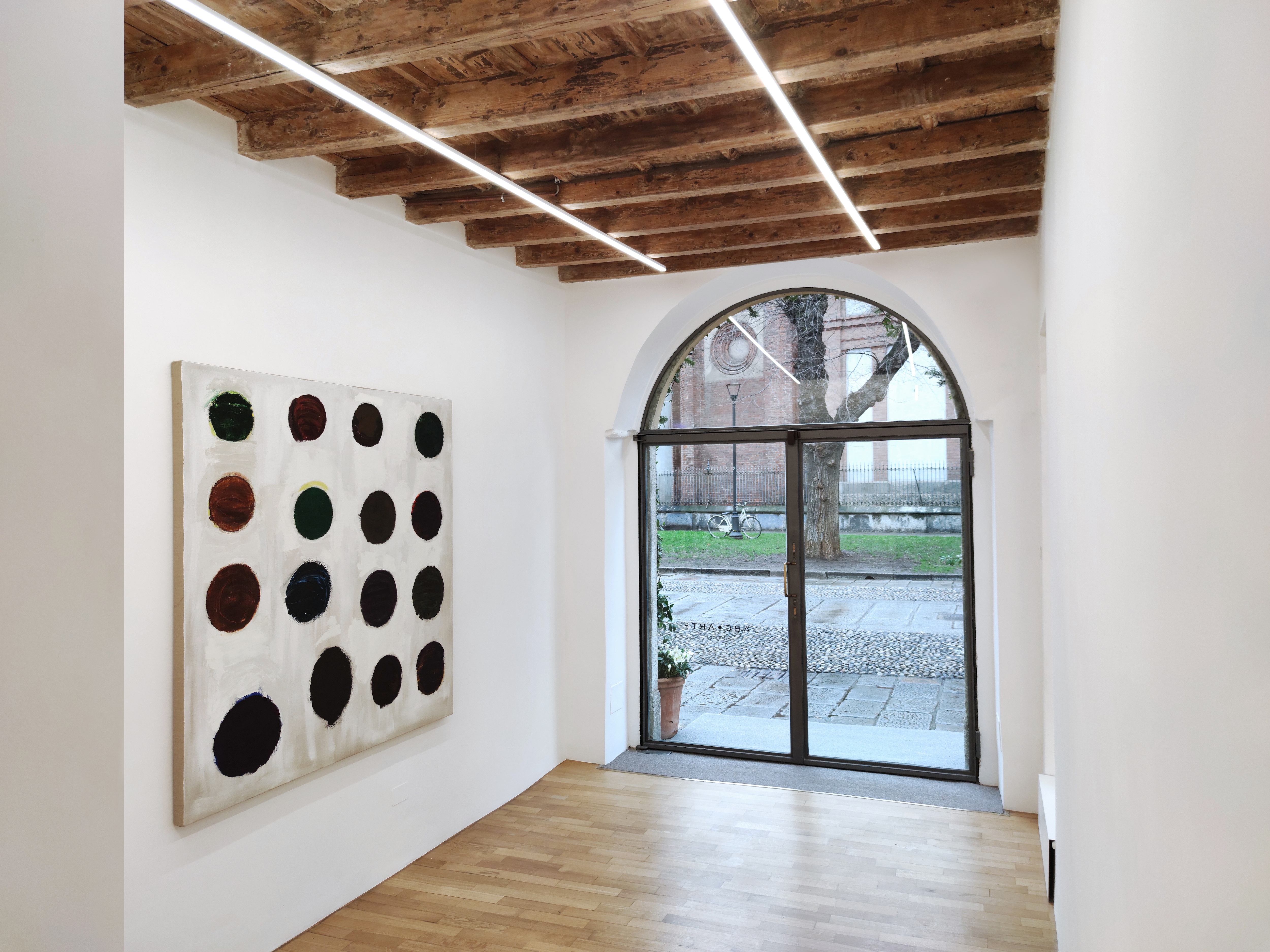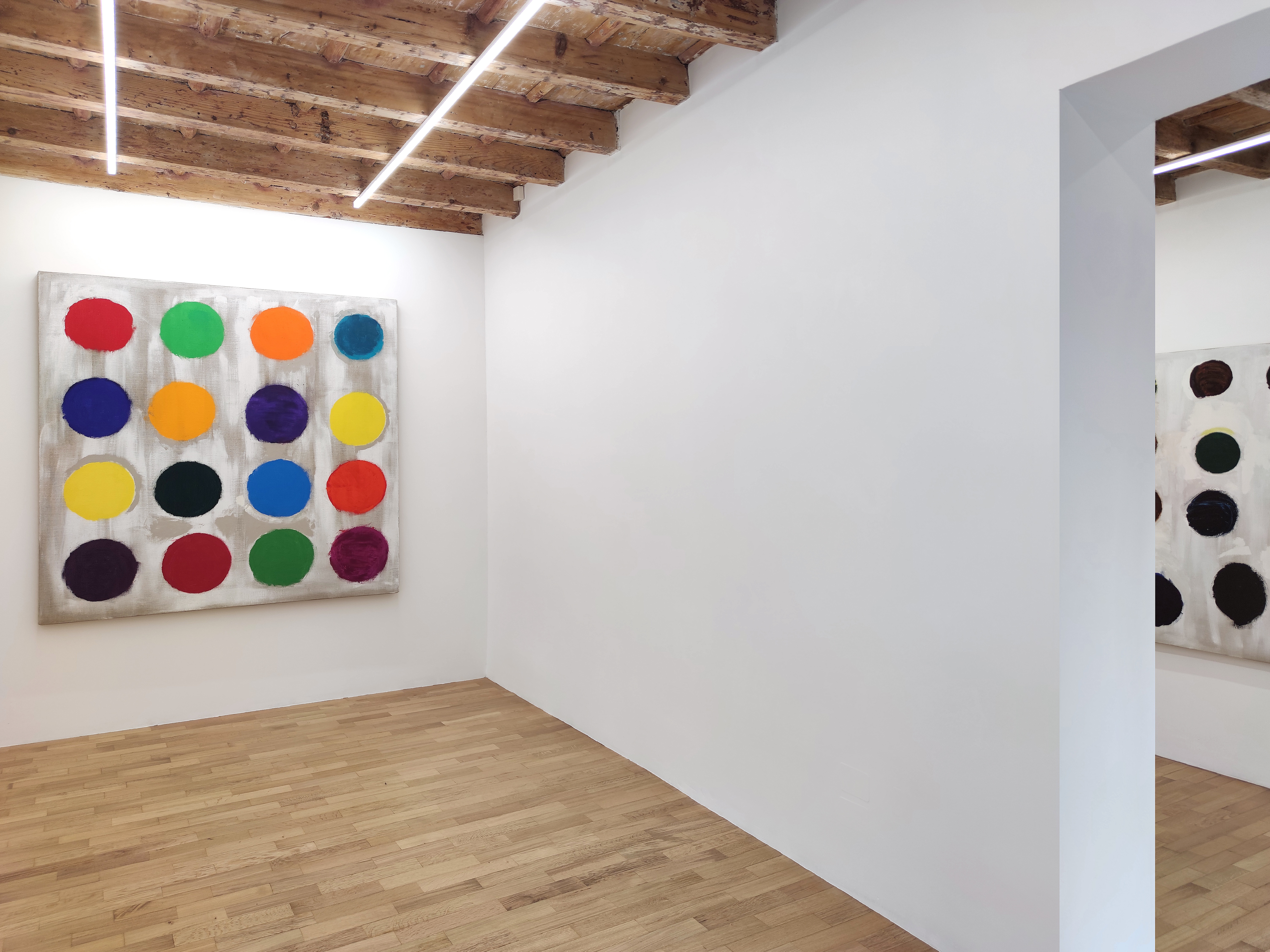 «Trattandosi di due sole opere sono entrambe emblematiche nel confermare e amplificare la ricerca dell’artista sulla primarietà degli elementi pittorici. Cerchi e punti dalla forte valenza cromatica e luminosa, che galleggiano su una tela imbiancata o grezza lasciando presagire uno spazio in cui la luce è trattenuta. Prendendo in prestito le parole dello stesso artista: “Il colore scatena le emozioni, e lo spazio pittorico è un luogo acritico che incornicia e contiene queste emozioni affinché possano dare accesso a una comprensione universale”».