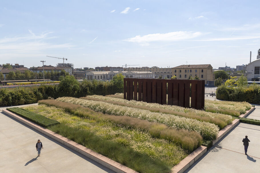 Outdoor spaces of the Pirelli HangarBicocca. Photo by Lorenzo Palmeri. Courtesy of Pirelli HangarBicocca.